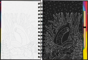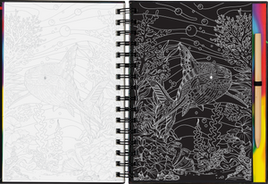 • Use the super-fine stylus included to trace the white lines on each black-coated page, uncovering undersea art that sparkles and shines.
