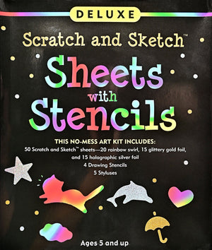 Deluxe Scratch and Sketch Kit (50 Assorted Sheets with Bonus Stencils) (Peter Pauper Press)
