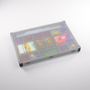 • Mini-American size and Standard Card size tray can each hold 40 single-sleeved*, or 75 unsleeved cards