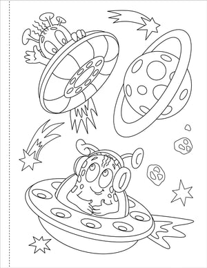 Youngsters will have hours of fun coloring favorite and fantastic outer space subjects!