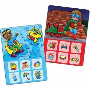 A matching and memory game featuring superheroes with special powers. The game is played similarly to all our other lotto games...use your memory skills to match your superheroes' power tiles and complete your board! Items on the tiles range from kites to umbrellas and can be used to encourage discussion about the different items.