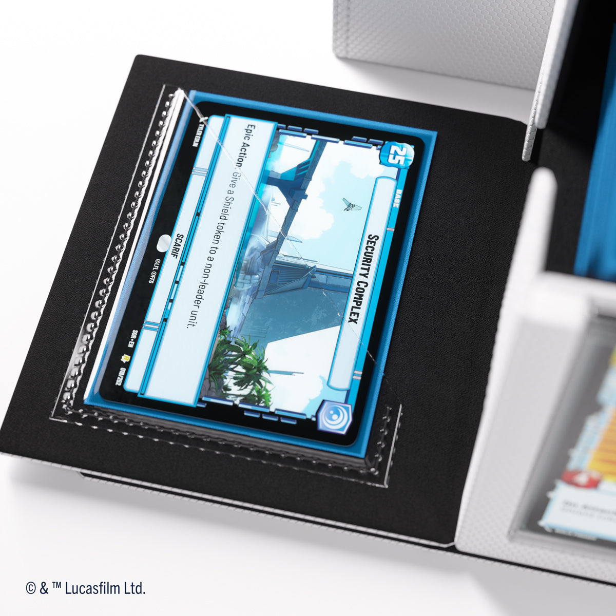 The Deck Pod, an officially licensed premium deck box, is specifically designed for the needs of Star Wars: Unlimited players. UNIQUE FEATURE: The Deck Pod includes a Slide Card Case with additional UV protection for keeping the leader card. Due to the innovative placement of that card, the stored deck can be easily identified without opening the box. The Slide Card Case can also be detached and used during gameplay.