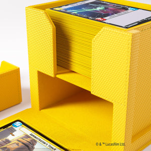 The Deck Pod, an officially licensed premium deck box, is specifically designed for the needs of Star Wars™: Unlimited players. UNIQUE FEATURE: The Deck Pod includes a Slide Card Case with additional UV protection for keeping the leader card. Due to the innovative placement of that card, the stored deck can be easily identified without opening the box. The Slide Card Case can also be detached and used during gameplay.