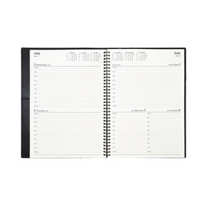Printed on a subtle cream paper, each dated page layout features a six-month to opening calendar, week numbers, Julian days, as well as both national and international public holidays.