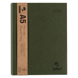 The Cumberland 2025 Earthcare Diary A5 DTP includes Covers that are constructed from 100% recycled fibres with 30% post-consumer waste.