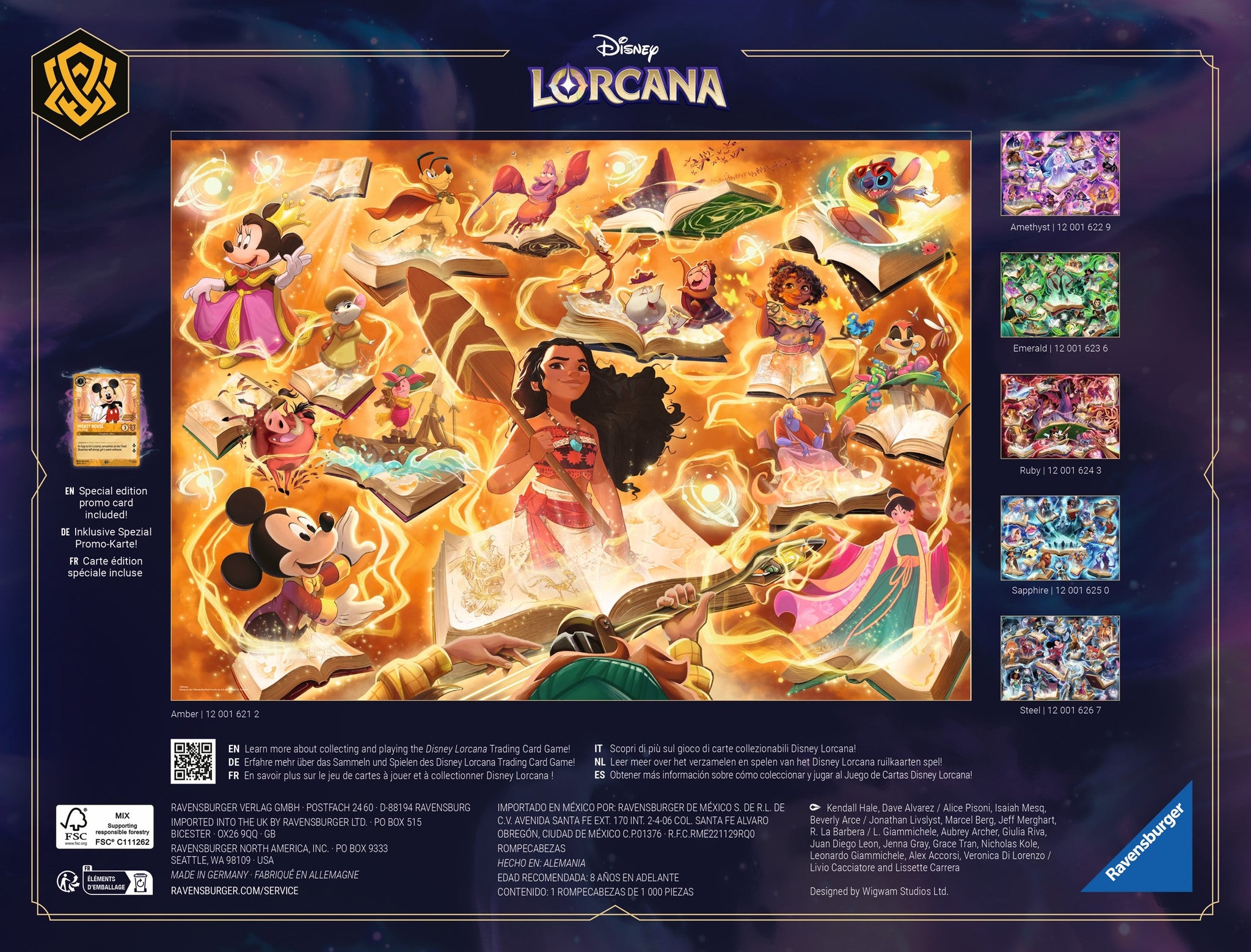 • Each puzzle is themed to a magical ink, Amber, Emerald, Ruby, and Sapphire, and presents a unique, multicharacter scene that reflects the traits and storytelling behind that ink. Whether you’re a Disney Lorcana fan, a Disney enthusiast, or a puzzle collector, this is a series worth completing.