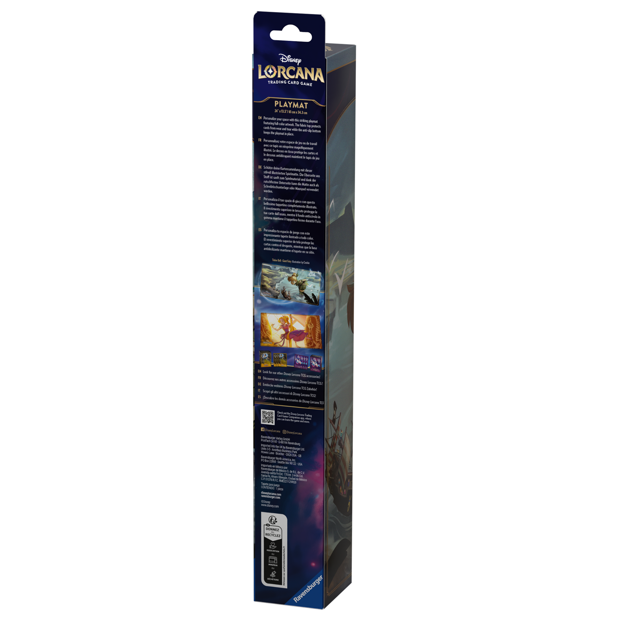 Protect game cards during play and personalize play space with these stunning full-sized playmats. One design features Disney’s Tinker Bell, and the other features Disney’s Rapunzel.