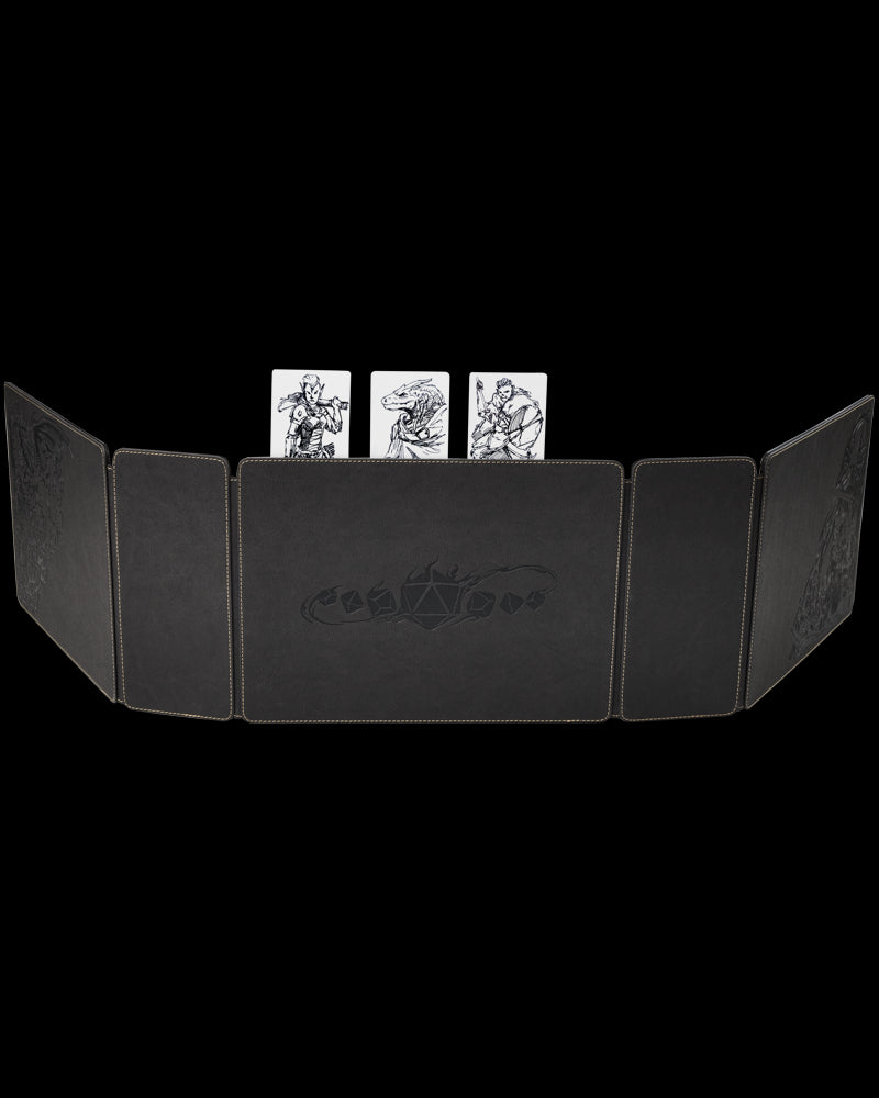 The GM screen features an integrated initiative tracker, pockets for notes and bands for phones & pens. Level up your RPG experience!