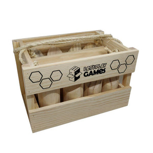 The classic garden game! A popular pastime, play skittle toss on almost any surface, including grass and sand! The game features lightweight wooden pieces that players of all ages and strengths can easily pick up and play. Contents: