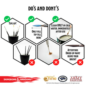 • Stylish beginner gift set - The stylish black brush handles, decorated with D&D prints, make this brush set an attractive gift set for any hobby painter and role-player.