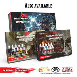 Even with Nolzur’s Marvelous Pigments, applying any type of paint is often done best with a brush. The Dungeons & Dragons brush set contains 3 fantastic brushes – each selected for a special purpose and combined they make a perfect starter selection for any painter. The bristles are made from synthetic Toray hair - despite animal products, they offer excellent brush quality at an affordable price.