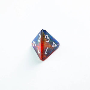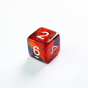 Choose your weapon! This dice set contains a D4, a D6, a D8, two D10 (10 and 00), a D12 and a D20. All dice are round-cornered and manufactured at a premium level. The Galaxy range is the exciting fusion of two or more cosmic colours, creating unique looks with the addition of glittering elements. They are packed in a window cardboard box that displays all dice at the front.