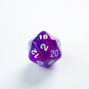 Choose your weapon! This dice set contains a D4, a D6, a D8, two D10 (10 and 00), a D12 and a D20. All dice are round-cornered and manufactured at a premium level. The Galaxy range is the exciting fusion of two or more cosmic colours, creating unique looks with the addition of glittering elements. They are packed in a window cardboard box that displays all dice at the front.