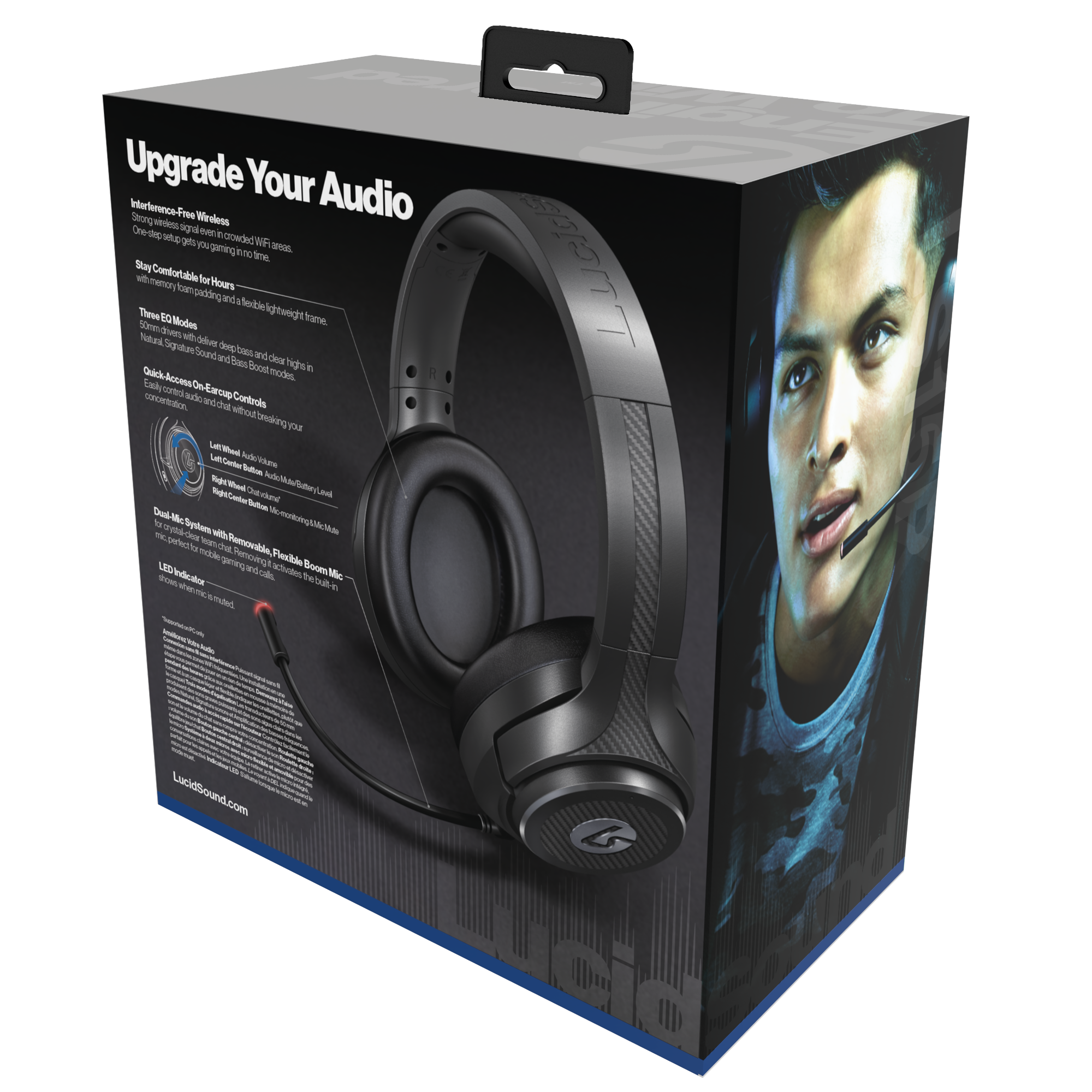 • Dual-Mic System with flexible boom mic with LED mute indicator for precision chat