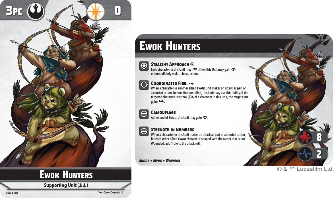 An iconic Rebel and her Ewok companions join Star Wars™: Shatterpoint in this new Squad Pack! Featuring both Leia Organa and Chief Chirpa as Primary Units, the Ewok Paploo as a Secondary Unit, and two Ewok Hunters wielding bows as Supporting Units, this pack gives players a variety of new options for creating Galactic Civil War-era squads. In addition to beautifully sculpted miniatures of these characters, this pack also includes all the Stat, Order, and Stance Cards players need to field them in battle.
