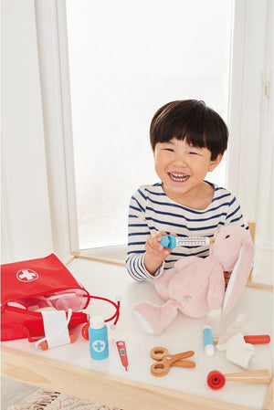 This wooden medical set allows children to explore their imagination and enjoy on-the-go pretend play.