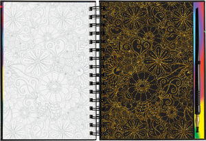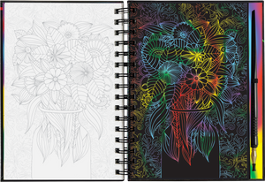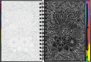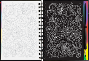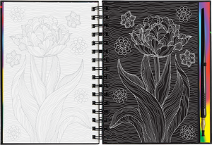 • Use the super-fine stylus included to trace the white lines on each right-hand black-coated page, uncovering flower art that sparkles and shines.