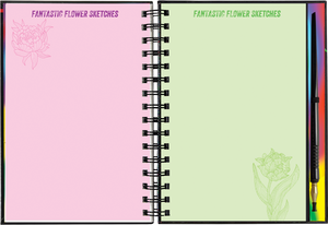 • The left-hand pages are coloring pages with flower designs, ready for you to get extra creative with markers or colored pencils.