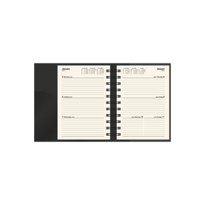 Printed on a subtle cream paper, each dated page layout features a six-month to opening calendar, week numbers, Julian days, as well as both national and international public holidays.