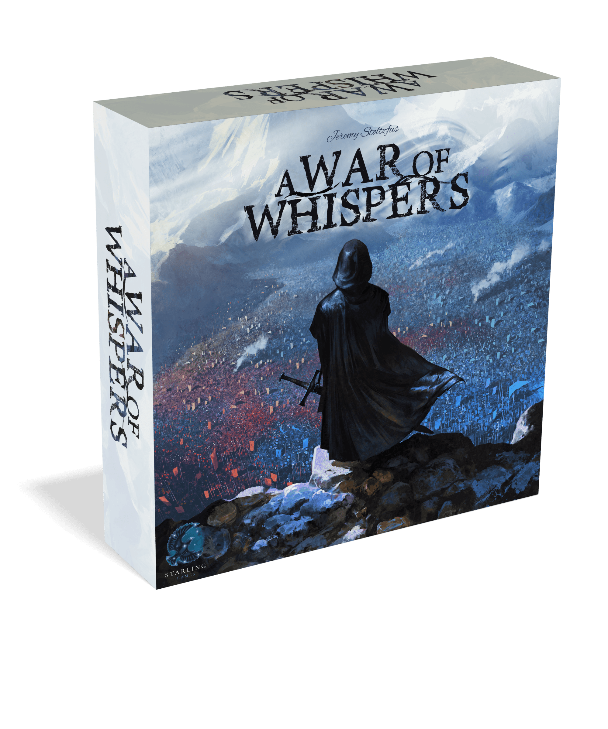 A War of Whispers is a competitive board game for 2 to 4 players. Five mighty empires are at war for the world, but you are no mighty ruler. Instead, you play a secret society that is betting on the results of this war while pulling strings to rig the results and ensure their bets pay off. A War of Whispers is a game of deep strategy, hidden agendas, and shifting loyalties. You start the game with five loyalty tokens, each corresponding to one of the five different empires, bet randomly on a loyalty value. Your primary goal is to ensure that when the game ends, the empires you are most loyal to control the most cities across the globe. Gameplay consists of turns broken down into four phases:
