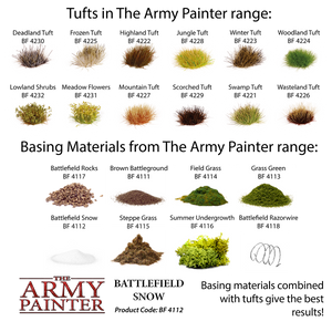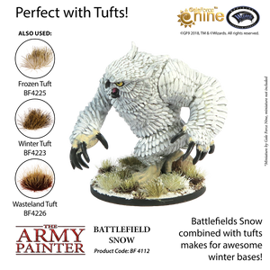For any arctic climate or winter bases. Gives a nice sharp contrast to darker or very multi-coloured models. Creates the perfect and winter and snow base. Use with different tufts and basing materials for a greater effect.
