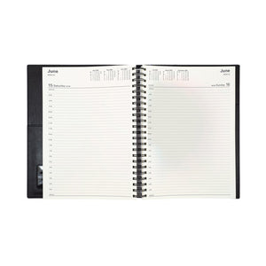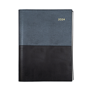The best selling Vanessa Diary is the diary of choice for astute professionals. Its durability is assured with double wiro binding and heavy-grained metallic and matt PU cover. Printed on a subtle cream paper, each dated page layout features a six-month to opening calendar, week numbers, Julian days, as well as both national and international public holidays. This series comes with the added feature of an internal storage pocket in the desk diaries.