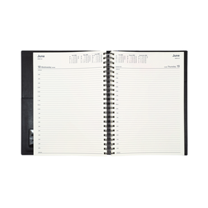 Printed on a subtle cream paper, each dated page layout features a six-month to opening calendar, week numbers, Julian days, as well as both national and international public holidays.