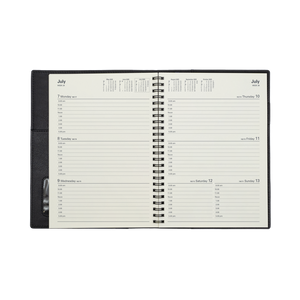 Printed on a subtle cream paper, each dated page layout features a six-month to opening calendar, week numbers, Julian days, as well as both national and international public holidays.