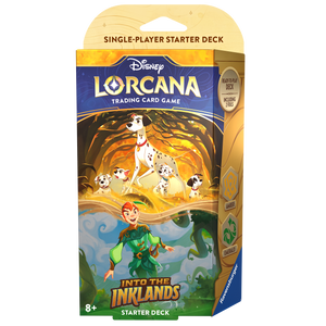 Two starter decks are available for Into the Inklands. Each deck is playable right out of the box, has 60 cards, and features cards from two inks, each with distinct play styles. The two ink combinations are Amber & Emerald and Ruby & Sapphire.