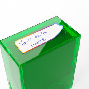“If you’re gonna stand, stand like a Bastion!”– The Bastion 50+ is a very compact and rock-solid deck box to safely protect 50+ double-sleeved cards in Closable Inner Sleeves. It is ideal for decks with 55+ double-sleeved cards in standard inner sleeves. Due to translucent materials and smart positioning of the closing flaps, the top card is fully visible from the outside without opening the box. The innovative secure click-lock mechanism protects your deck while still allowing easy access. The Bastion consists of 2 symmetrical parts that easily convert into a card pile and discard pile holder. It is perfect for a huge variety of trading card games. Thanks to its modular design, the Bastion fits perfectly into other Gamegenic products. It also comes with a write-on sticker for personalization. The Bastion is available in 10 different colors, including an exclusive mix & matched black/clear version.