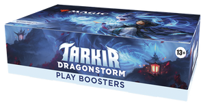 Tarkir faces a full-scale draconic assault, pitting clan against clan and all of civilization against a maelstrom of wings, claws, and fire. Choose one of five clans and discover your favorite way to play, then master the fearsome Dragonstorms and summon dragons of your own to rain down fiery devastation! This Tarkir: Dragonstorm Play Booster Box containing 30 Play Boosters, perfect for both Limited play and opening packs just for fun. Each Play Booster contains 14 Magic: The Gathering cards and 1 Token or Art card, including 1–4 cards of rarity Rare or higher and 3–5 Uncommon, 6–9 Common, and 1 Land cards. 1 card of any rarity is Traditional Foil. A Traditional Foil Land replaces a Land in 20% of boosters.