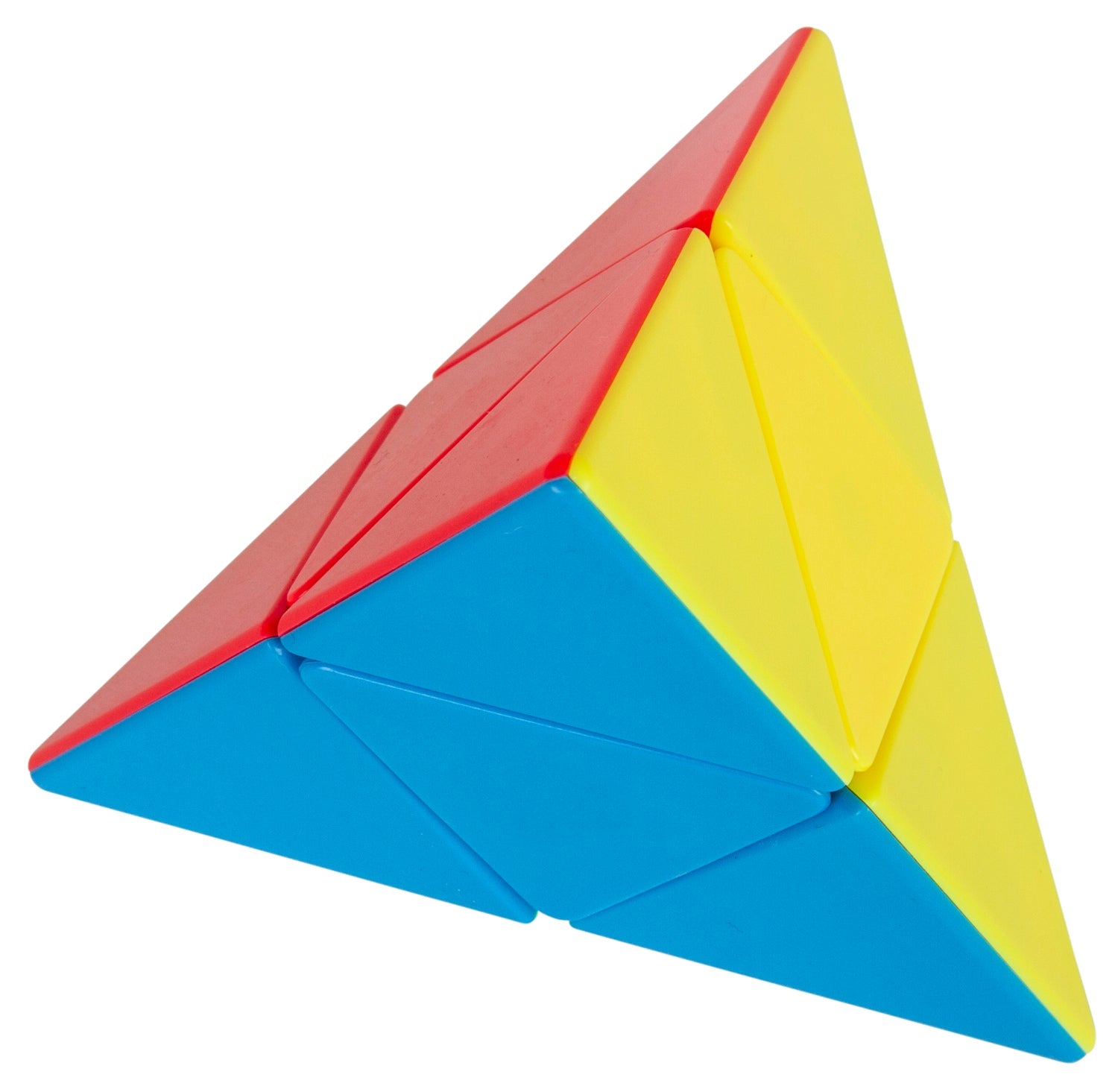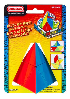 Tetrahedral shaped brain teaser starts looking like a pyramid but quickly changes with each turn. Twist to change shape & colour, then solve to get all sides the same colour!