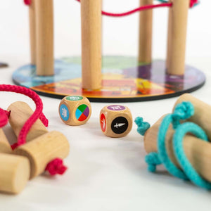 Players must take turns placing or stacking Denchuu (electric poles) in the correct locations without any suspended cables touching. But be careful not to be the one who will cause the structure to fall. This game requires thought, concentration and skill.