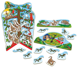 Contents: 1 x two-part 3D tree, 32 x monkey cards, 1 x pool board, 1 x spinner board, 1 x two-part plastic spinner arrow, 1 x instruction leaflet