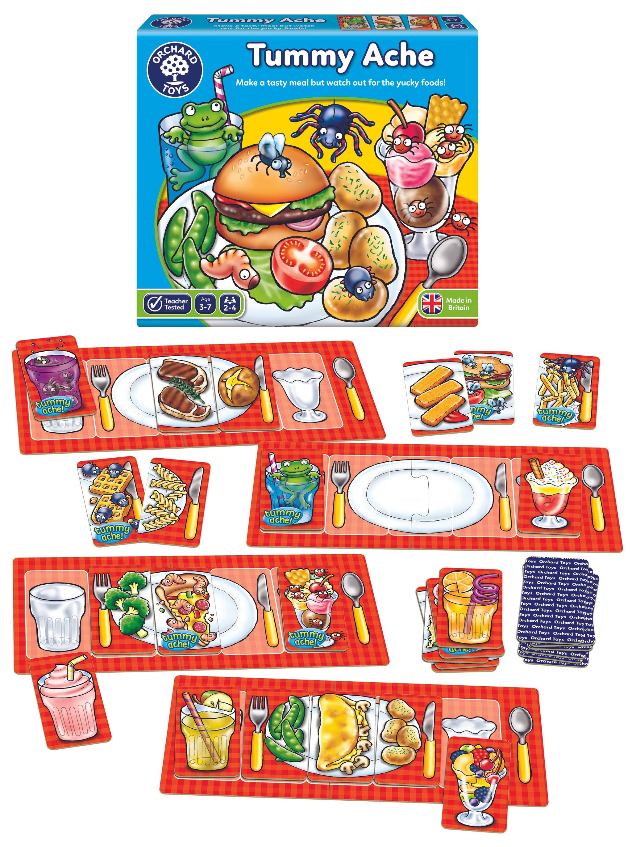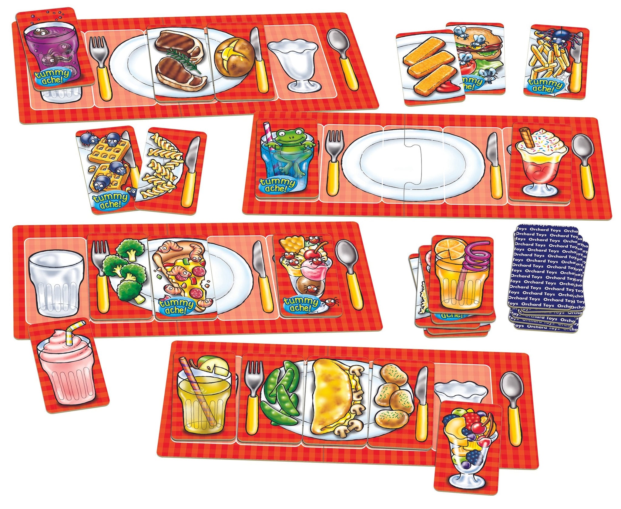 Contents: 4 x place setting boards, 20 x food cards, 10 x ‘Tummy Ache’ cards, 1 x instruction leaflet