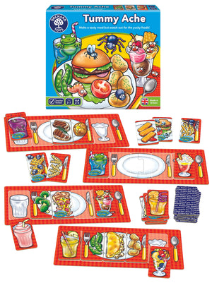 A hilarious game for all the family. Try to put together an edible meal on your place setting, but beware of making yucky combinations that will cause a tummy ache! Players take it in turns to pick up food and drink cards from the central pile and place them on the different sections of their plate. If they pick up one of the yucky 'tummy ache' cards they must shout out 'Tummy ache!' and place it on their board to be replaced later in the game. The winner is the first player to build a complete meal on their board.