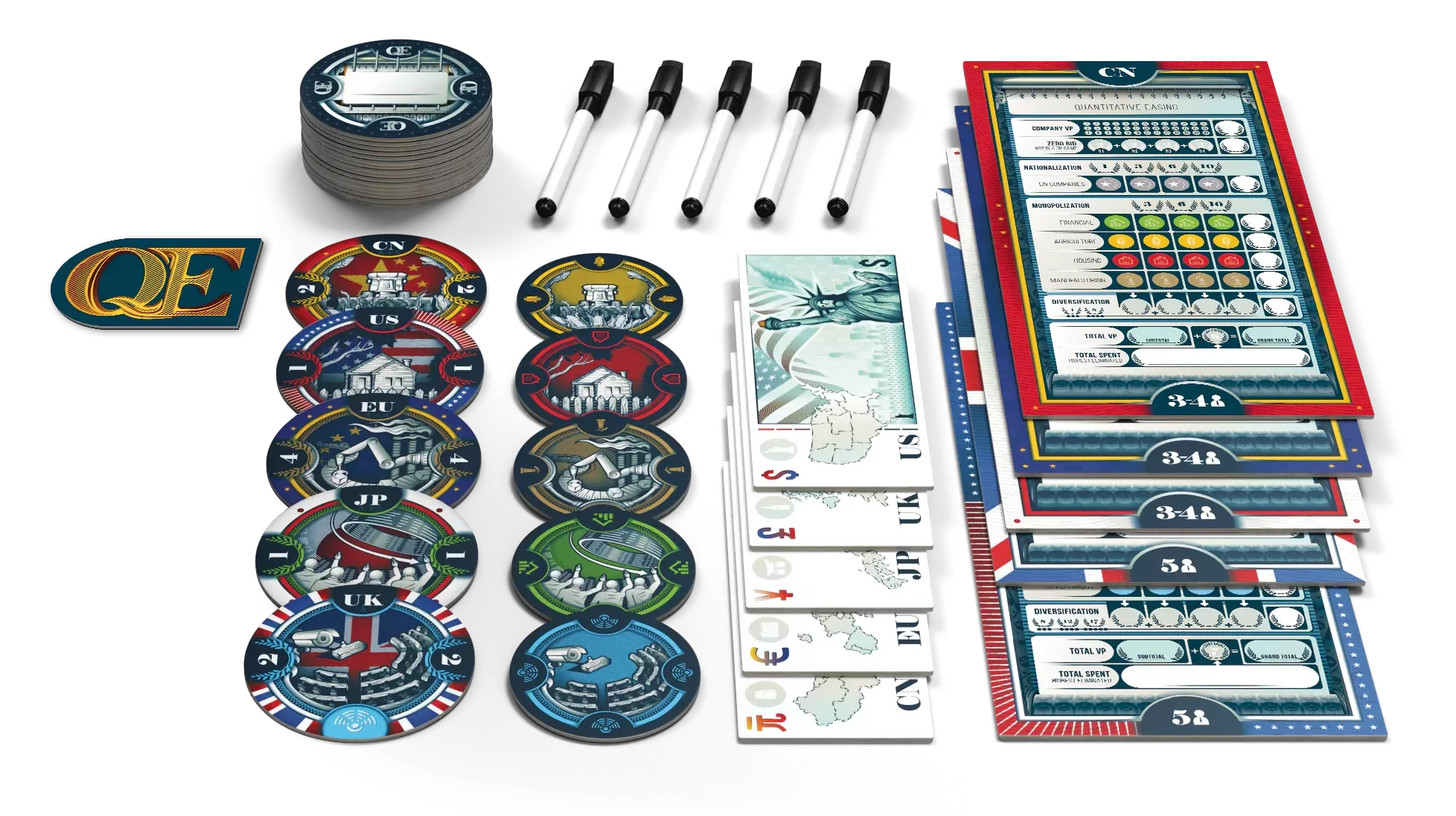 With the global economy crashing, enact QE (Quantiative Easing) measures and start printing that money! Careful—if you print the most, you lose!