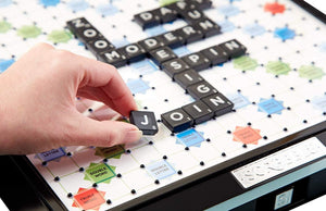 Every word counts when you are playing this deluxe version of the world's most popular word game. Featuring an elegant board in modern colours and chic black styling along with a built-in turntable and storage drawer, Scrabble Deluxe is the perfect combination of sleek looks and improved functionality.