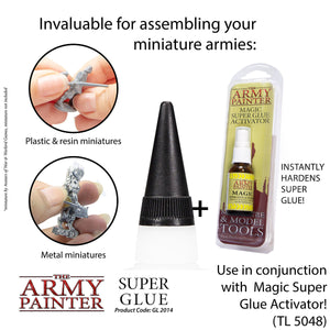 Also known as cyanoacrylate - this is super glue at its best. Medium thickness and high quality, this Super Glue is ideal for miniatures, basing and small parts due to its precision tip. Works great for assembling plastic, resin and metal miniatures.