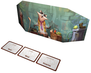 In the first round of play, three word cards are revealed, and each player (or team) secretly assigns the same three objects to these three words. These objects come from an assortment of odd items included in the box. Does the plastic plant best match the word "double", "dream", or "sharp"?