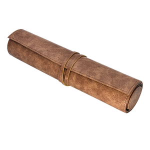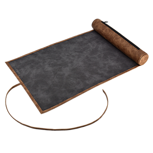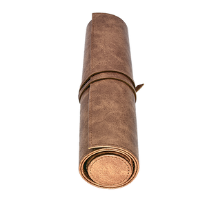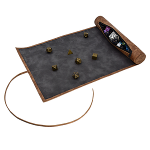 The Dice Scroll offers premium dice storage and functions as a dice rolling mat. Made with a durable leatherette exterior and soft microfiber interior, your favorite dice will be stored safely and your table protected when rolling on this soft roll-out mat. The zippered compartment holds 20+ dice on average. The rolling mat rolls into a scroll around the zippered compartment and is secured shut with a single tie to look like an ancient leather-bound scroll. Great for your next role-playing game, D&D session, or cosplay!